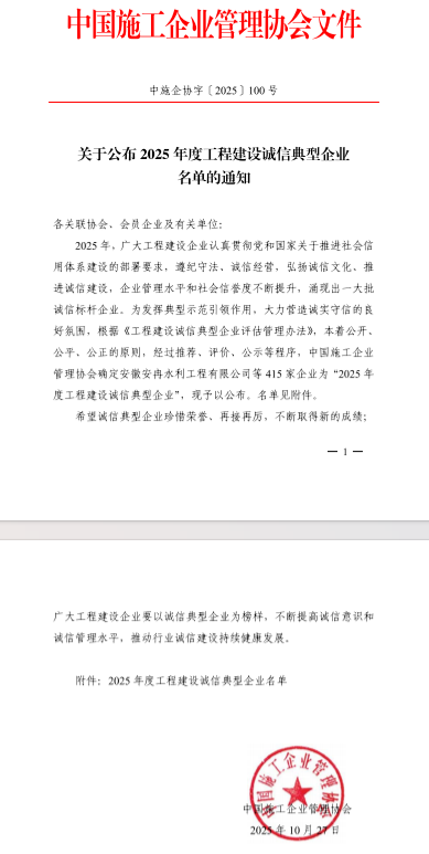 近日,中國施工企業管理協會正式公布2025年度工程建設誠信典型企業及誠信企業家名單。工程局公司憑借在誠信經營、合規...
